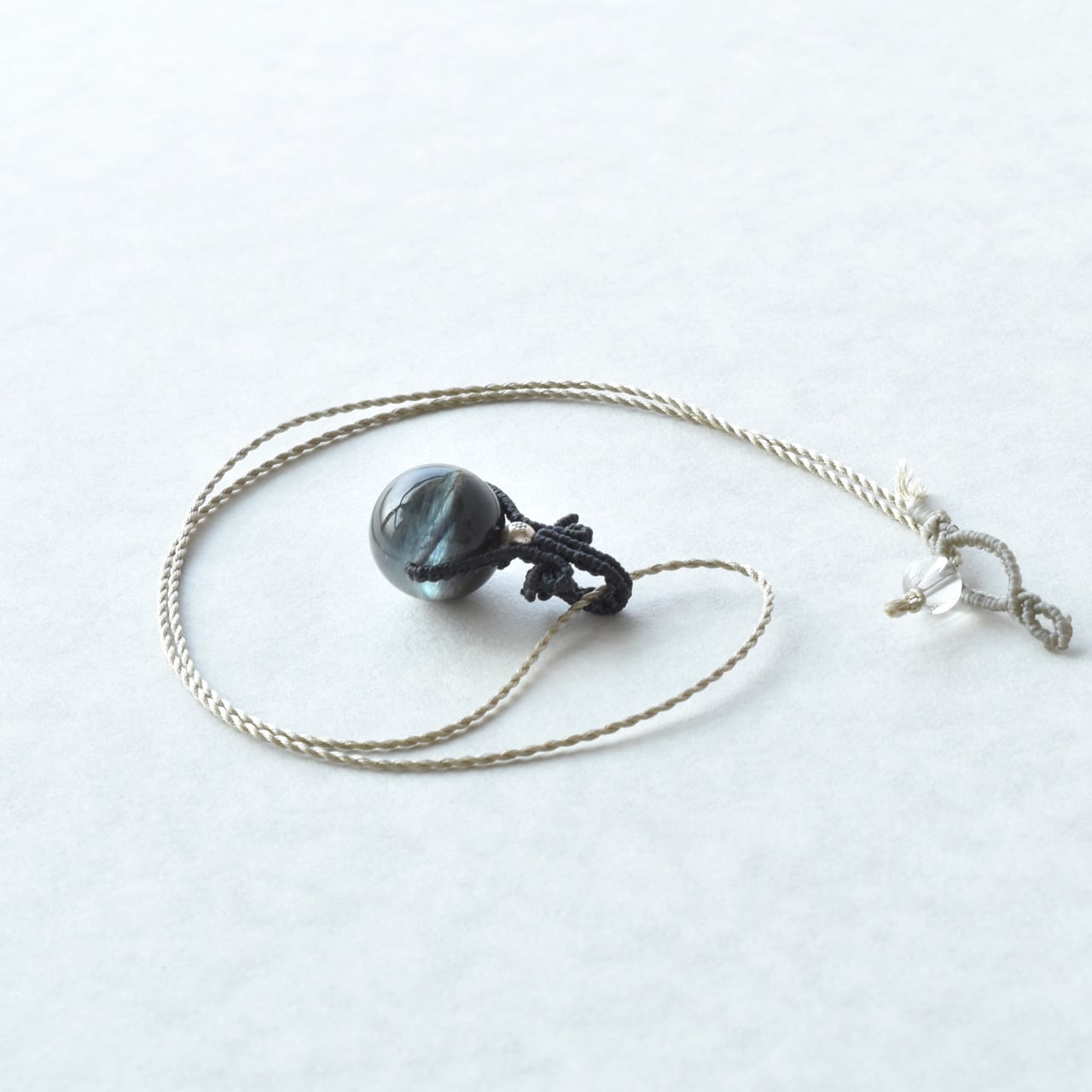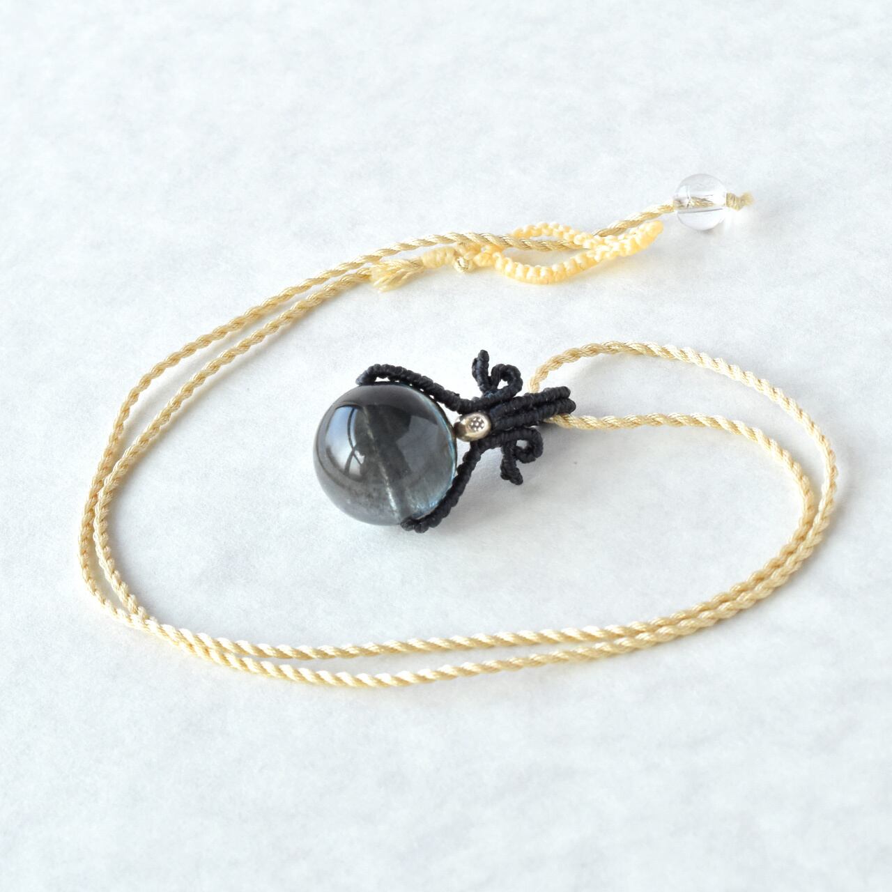 【宵闇ノ守】ブラックスターアクアマリンのマクラメ編みペンダント・シルク首紐・金属アレルギー対応