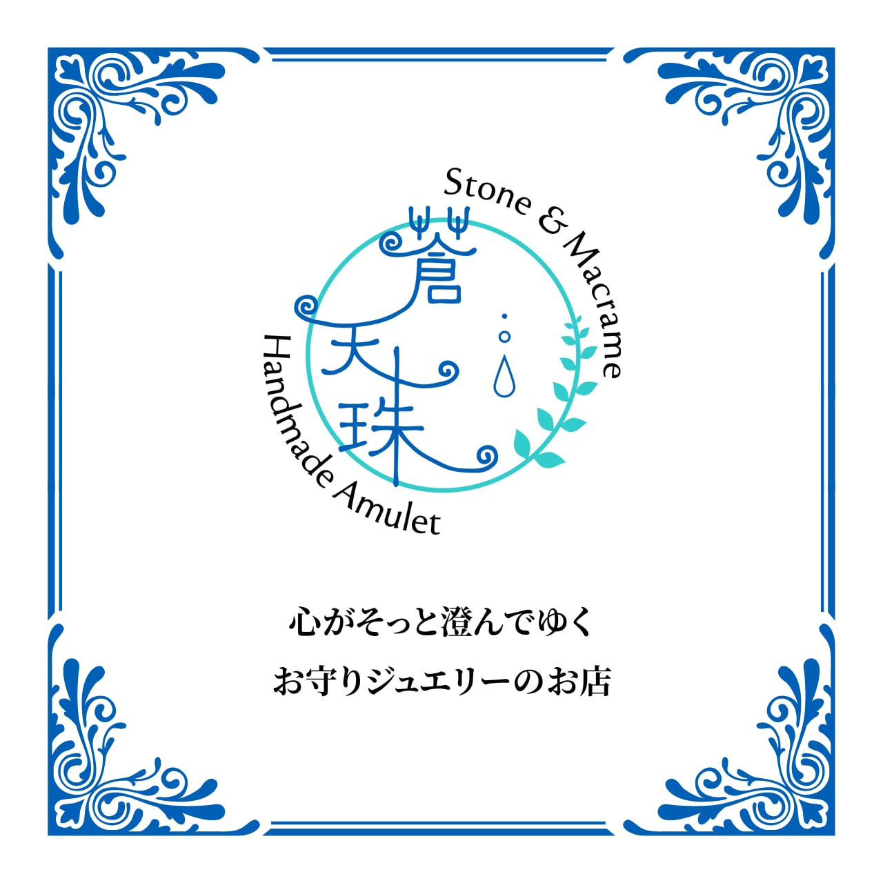それを縁取るマクラメ装飾は、水色(写真よりも実際は少しくすみがあります)、マリンブルー、象牙色を使い、さわやかな印象にお仕立ていたしました。