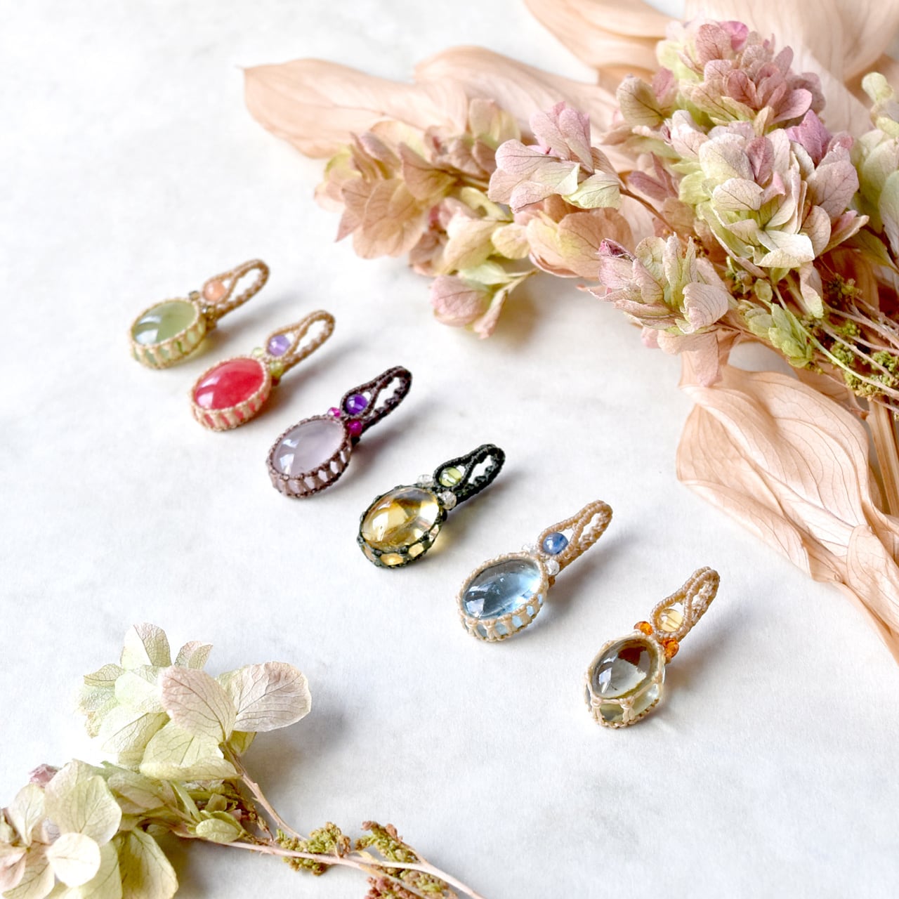 石と結びでそっと留めました。